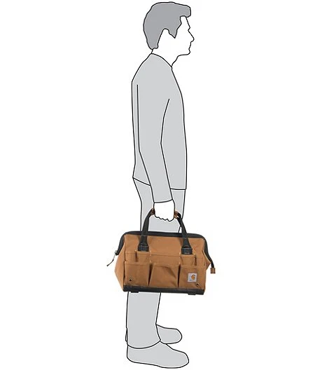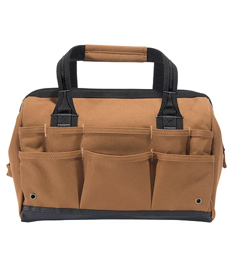 Stow your high-use tools on the outside, and keep a drill and other small stuff secure on the inside. This Carhartt heavy-duty tool bag puts all of your must-have tools within reach when youโre on a field repair or an installation job. Its rugged build resists light rain and is designed to handle years of tool hauling.