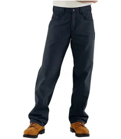 Sits slightly below the waist. Loose through seat and thigh. 19” leg opening fits easily over work boots - BRASS ZIPPERED FLY WITH NOMEX® ZIPPER TAPE