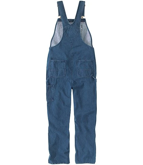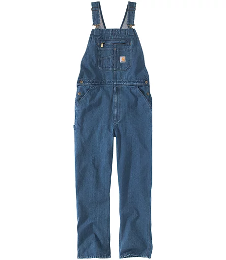 A Carhartt staple, these menโs bib overalls give you easy mobility on the job. They have a generous cut and the midweight denim is prewashed for a broken-in feel. These overalls feature multiple pockets with a zippered pocket on the bib and reinforced pockets at the back.