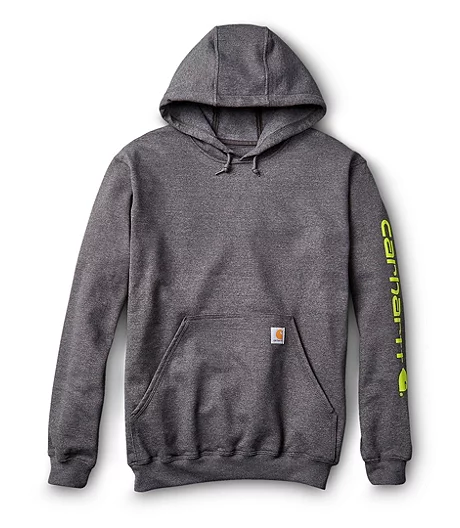 Warm up in this handsome hoodie that offers a draw-cord closure for a snug fit and front hand-warmer to take the chill off. Spandex reinforces the rib-knit cuffs and waistband for a close fit, while the Carhartt logo on the left sleeve says you know a quality pullover when you see it.