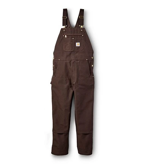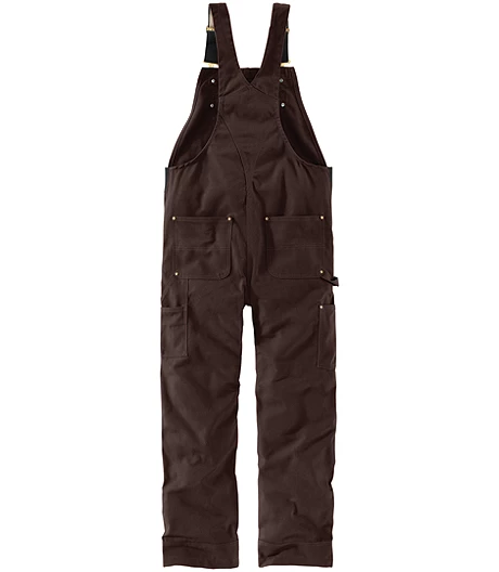 From Carhartt, these cotton duck overalls perform well and provide a good fit. They have adjustable suspenders with front elastic for flexibility as you move. For added comfort, stretch side gussets fit close to the body at waist level. These overalls have chap-style front legs and kick panels. Built for strength and durability, the overalls feature triple-stitched main seams with metal rivets placed at typical stress points.