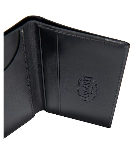 Made of full grain saddle leather, this Carhartt Trifold wallet is extremely durable. It has a bill divider and 4 card storage pockets.