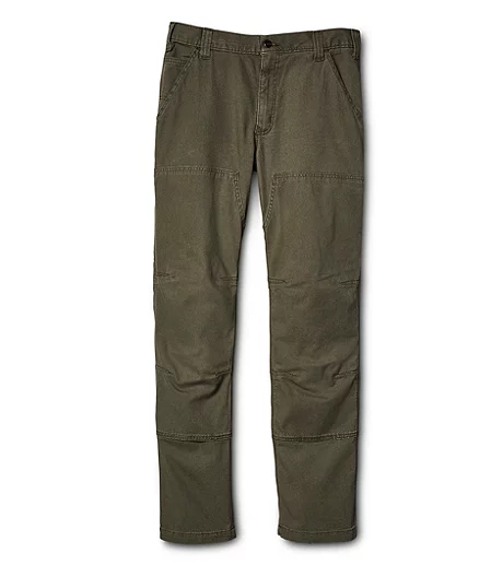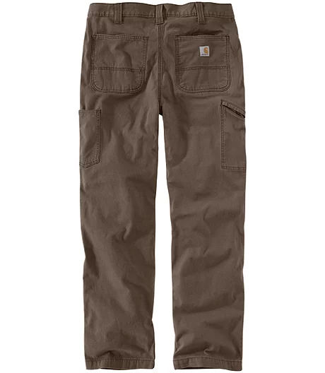 These Carhartt work pants are built for strength and comfort. They are made with stretch technology for easy mobility. In a relaxed fit, the style includes a gusseted crotch for added comfort. Double front panels include clean-out openings and space for knee pads. These pants offer plenty of pockets for keeping your small work essentials handy.