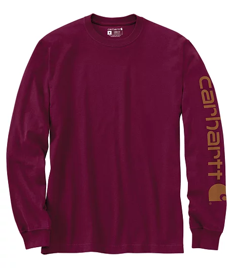 Be sporty in this lightweight, all-cotton, long sleeved shirt. The Carhartt logo on the right sleeve boasts of quality, comfort and durability. It features a ribbed crewneck and cuffs and side-seamed construction to prevent twisting. This is a great piece to add to any casual wardrobe.