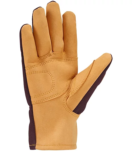 These Carhartt synthetic leather gloves are well reinforced for durability. Elasticated wrists keep the gloves comfortably in place while you work.