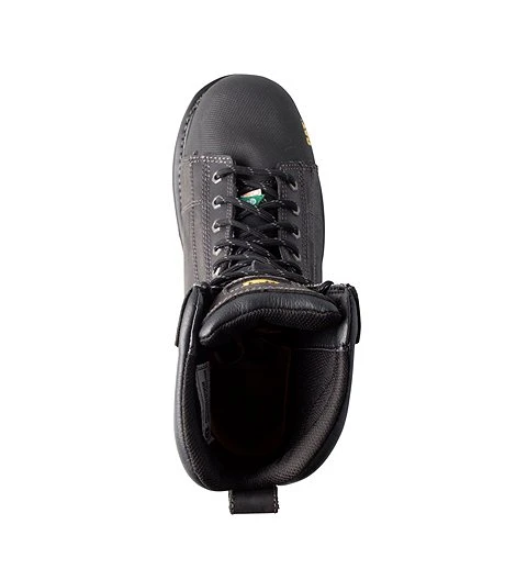 Sturdy yet comfortable, these Men’s Control Composite Toe, Composite Plate waterproof work boots from CATERPILLAR will keep your feet dry and warm throughout your work day. Constructed with full grain waterproof leather uppers and waterproof membranes, they offer protection in wet weather and moisture-prone work sites. The EVA insoles are removable in favour of orthotics and 200gr Thinsulate insulation provides lightweight warmth. Added safety is ensured with slip-resistant rubber outsoles, composition toes and plates, and CSA Omega electric shock resistance. These lace-up workboots include quick-tie clasps on the upper portion and rear pull tabs for easy on-off.