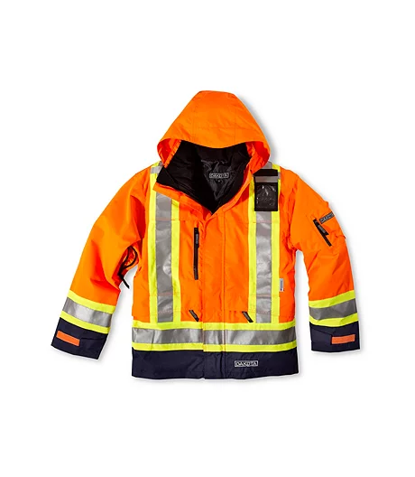 This versatile coat offers three durable, distinct options in one solid package. A great all-weather jacket, it features all the comfort and visibility you need on the job. Wear the shell or the quilted liner by themselves in the spring or summer, or wear them zipped together for winter time warmth. The outer shell features our exclusive HYPER-DRI® HD3 waterproofing system that keeps you dry from the inside out, and it meets CSA requirements for high visibility. The removable inner shell has T-MAX® breathable insulation which provides maximum warmth while still allowing effective temperature regulation.