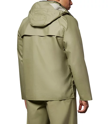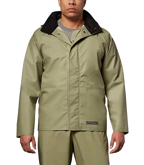 Stay dry in wet conditions in this generously-sized Dakota rain jacket with a three-piece peaked hood designed for an improved fit. The seams are fully taped and heat-sealed for 100% waterproof protection, while the back of the jacket is vented so you donโt overheat. The PVC material has been treated for resistance to most motor oils, chemicals, acids and the effects of sunlight, making this jacket ideal for food and fish processing, commercial and sport fishing, yard work, construction and chemical processing work.