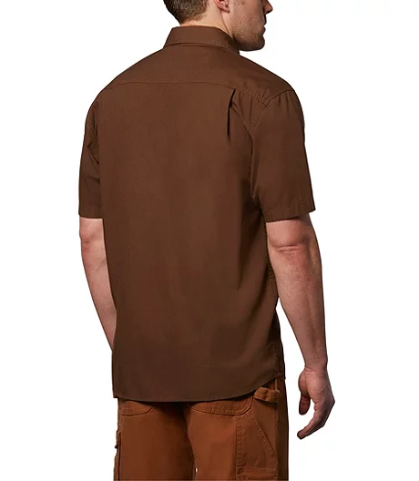 Our Dakota men’s short-sleeve contractor shirt is constructed with durability in mind, so it can stand up to the rigours of the work site. Made of naturally breathable cotton canvas, the shirt has been garment-washed to make it feel soft and control shrinkage. It has a relaxed fit with shoulder pleats for all-day comfort and a collar with permanent stays to prevent rolling at the collar points that will always look sharp. This men’s work shirt has roomy chest pockets with buttoned flaps for safe-keeping of small essentials and you can keep a pencil or pen handy in the left pocket pass-through. Seams are double-stitched for strength so you can wear this shirt time after time and keep enjoying a great feel and a great look.
