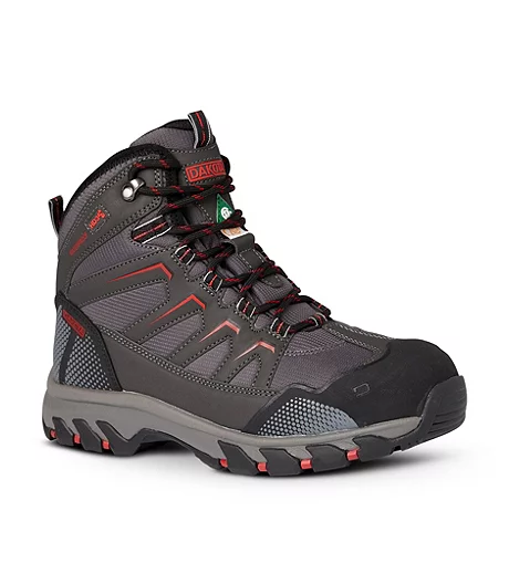 These Dakota mid-cut safety hiking-style boots keep your feet protected whenever you are on the job. Mesh uppers and linings offer breathable protection, while the Hyper-Dri® HD3 membrane delivers waterproof protection that won’t cause overheating. Compression-molded EVA midsoles and extra EVA heel pods give you added cushioning and comfort. The steel toes and plates provide protection, and the innovative Tarantula Anti-Slip™ outsoles ensure you get the traction you need to prevent slips and falls on wet, rough terrain.