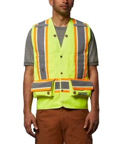 From Dakota, this surveyor’s vest is made of water-resistant ripstop fabric offering superior tear resistance. In high-viz orange, it remains flexible in cold and wet conditions. Fully compliant with WCB, Worksafe, DOT, CSA and BC MOT safety requirements for visibility, this VizLite™ Dual Technology work vest has multiple storage spots for the gear you carry with you on the job. Full details are covered in the accompanying feature box.