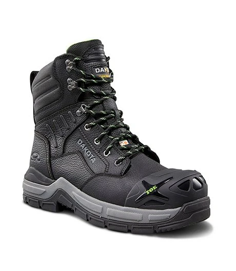 Equipped with CSA Grade 1 approved steel toes and composite plates, these Dakota work boots also have the protection of X-TOE® EXTERNAL SAFETY TOES that offer safety on the outside and more comfort inside. QUAD COMFORT® technology addresses shock absorption, weight distribution, cushioning and pressure displacement, while FRESHTECH® controls odour for all-day freshness. T-MAX® INSULATION allows you to work comfortably in winter conditions and TARANTULA ANTISLIP® rubber outsoles offer a safer way to walk. These work boots are well equipped for durability and service on the job.