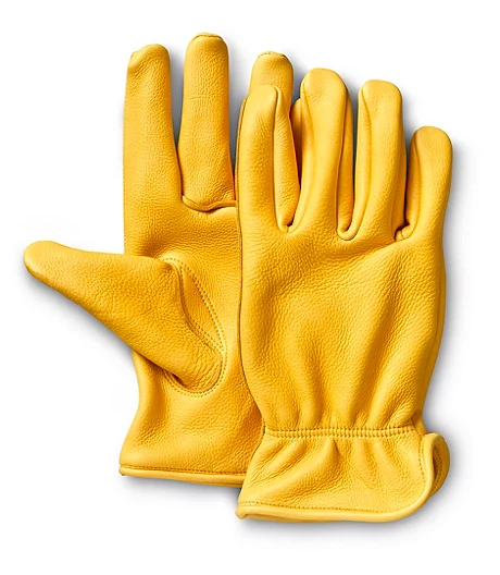 In soft deerskin, these Dakota Work Pro Series gloves are gun-cut with a winged thumb design. The men’s gloves have easy slip-on cuffs and shirred elastic wrists that provide a close fit to keep debris from getting in.