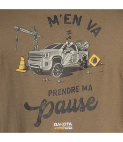 A humourous graphic on the back of this Dakota work shirt lets folks know you need a break. You can do that comfortably in ultrasoft cotton jersey. The crew neck on this tee is reinforced at the front for shape keeping and durability.