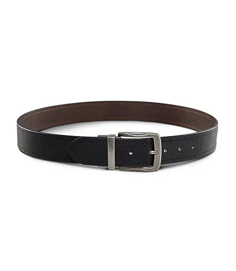 A versatile wardrobe staple, this Denver Hayes reversible belt does it all. The sturdy leather belt has a classic design that complements both work and casual outfits. Details like an antique nickel buckle and stitching along the edges of the strap add sophisticated finishing touches to the look.