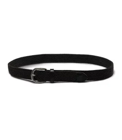 This braided one-inch belt from Denver Hayes is an eye-catching addition to any casual outfit. The belt stretches to provide a comfortable fit, and it has a faux leather loop and tab for contrast and added durability. The rounded buckle comes in nickel-free, silver-toned metal.