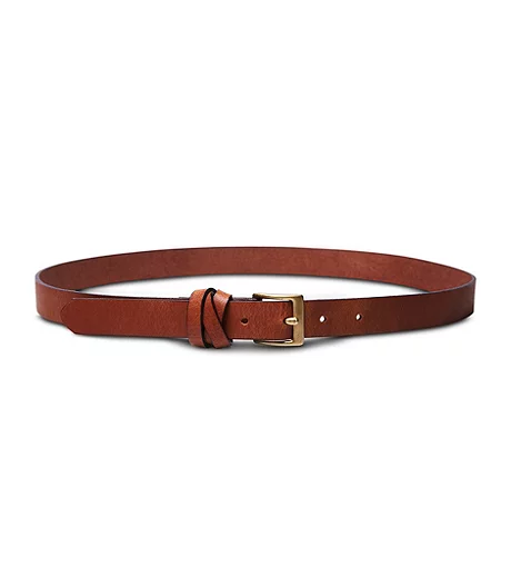This one-inch-wide leather belt is ideal for accessorizing your pants and shorts. The Denver Hayes design features a nickel-free square antique brass buckle in a sleek, smooth finish.