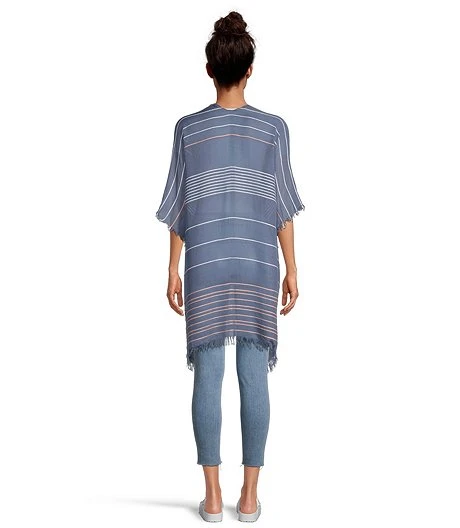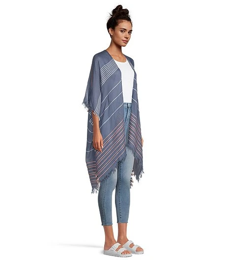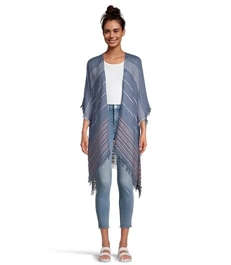 For a little extra warmth or a coverup on the beach, our FarWest ruana is just the ticket. Classic stripes and a frayed edge add the style you want.