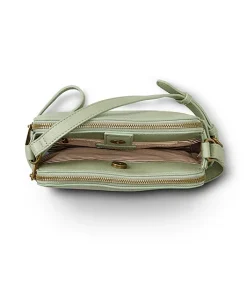 From Denver Hayes, this handy shoulder bag has three compartments – two with zippers – so you can keep your small personal items neatly organized.