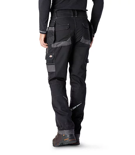 Zip-off angled holster pockets, 2 back pockets, hammer loop, ruler pocket. All pockets reinforced with Cordura® - REFLECTIVE PRINT