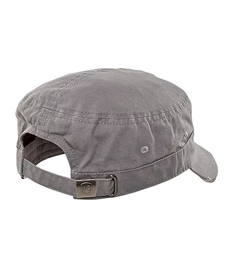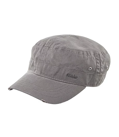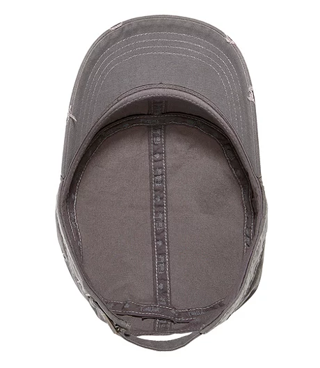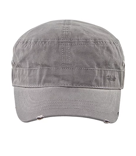 From FarWest, a classic cadet hat in 100% cotton, summer’s ideal breathable fabric. The distressed finish gives it a well-loved look and the adjustable back strap provides a personal fit.