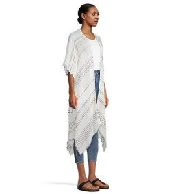 For a little extra warmth or a coverup on the beach, our FarWest ruana is just the ticket. Classic stripes and a frayed edge add the style you want.