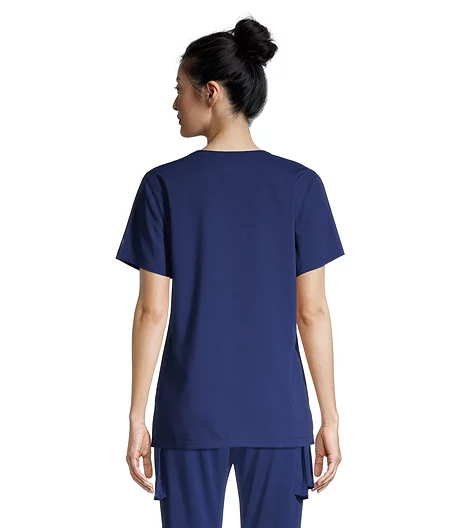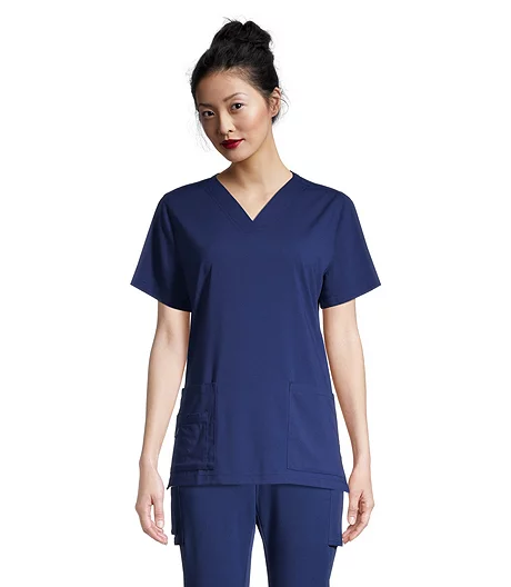 From our Health Pro Heart collection, this scrub top is simply sophisticated for a professional look. It features five front pockets to keep your everyday essentials at your fingertips. A bungee loop and pen pocket add practicality.