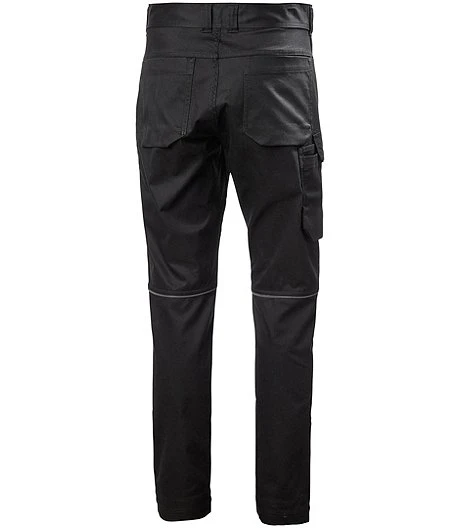 These Helly Hansen Manchester Service Menโs Work Pants are made of mechanical stretch fabric and feature a crotch gusset, providing freedom of movement. The work pants feature dual belt loops at the back which add both strength and stability at the waist. There are multiple roomy pockets to store your work essentials, allowing you to keep small tools at your fingertips.