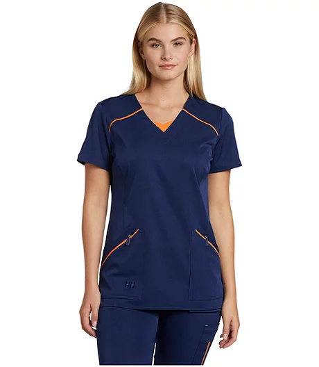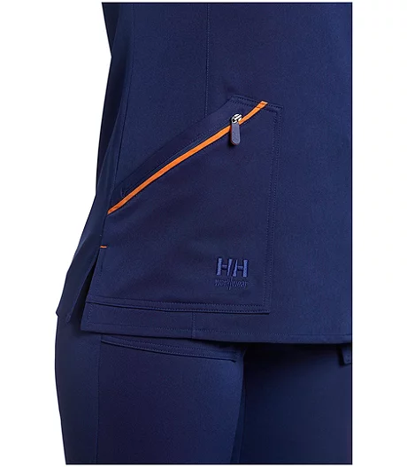 This Helly Hansen smart scrub top features four-way stretch fabric that provides comfort and ease of movement. Highlighted with contrast colour details, the scrub top features two back pleats for extra ease and front flap pockets for your workday essentials.