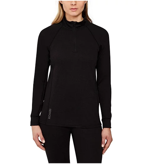 This midweight KOMBI women’s base layer zip top delivers comfort and warmth. Made of ultra-soft polyester and MerinoMIX PRO ethically sourced Merino wool, it retains heat while the ACCU-DRI® moisture-management technology ensures you stay dry when moving around. Perfect for a multitude of activities, this Merino wool base layer for women, featuring anti-friction flatlock seams and side inserts, will take you from the ski slopes to a cold night by the campfire when you want additional coziness.