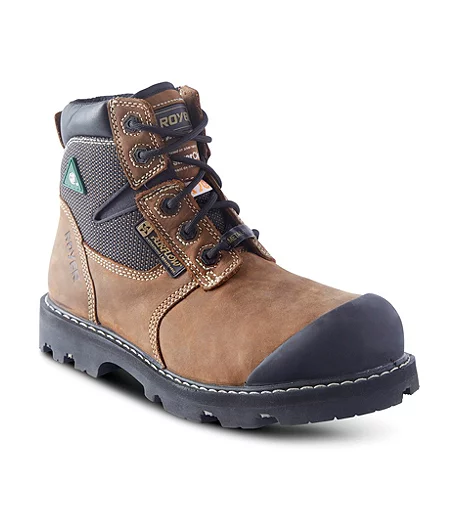 These metal-free work boots from LP Royer feature composite toes and plates. They meet Canadian safety standards for puncture and impact resistance, and they are electric shock resistant. They have abrasion-resistant leather uppers with waterproof membranes and ultra-resistant TPU toecaps. Fully lined for comfort, these menโs safety boots are equipped with supportive midsoles and insoles and light, flexible rubber outsoles.