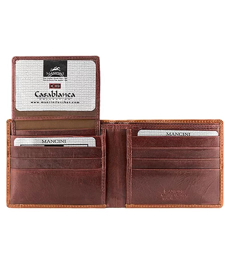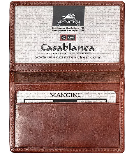 Our CASABLANCA Collection celebrates the fusion of traditional and contemporary styling. Effortlessly urban-chic with a laid back attitude. Featuring the latest RFID wave blocking technology to ensure your data and cards are safe. The special metallic layers integrated into the card slots prevent thieves from electronically reaching into your wallet. Finely hand-crafted in top grain leather.