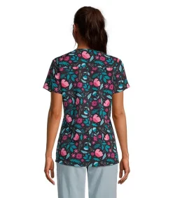Scrubletics Women’s V Neck Rouch Back Short Sleeve Printed Scrub Top
