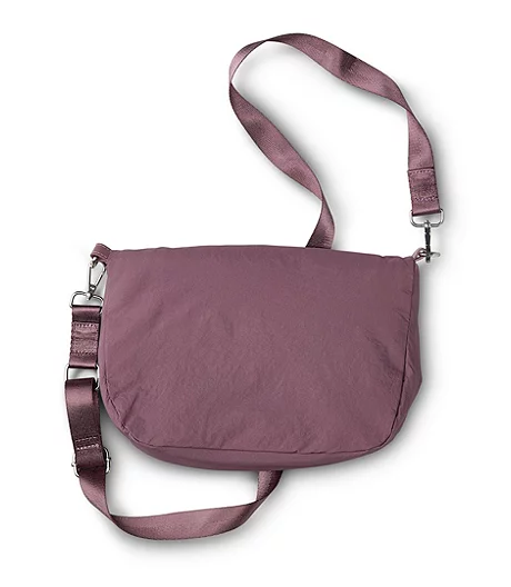 From Shambhala, a cross-body bag in nylon with silvertone metal hardware. The strap is adjustable for personal comfort. This bag has a hidden zippered pocket where you can safeguard important cards and other essentials.