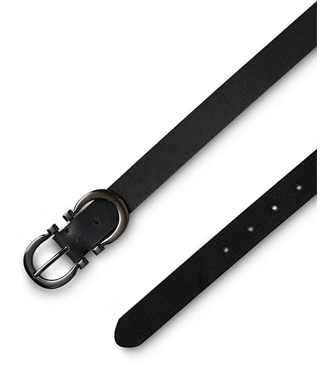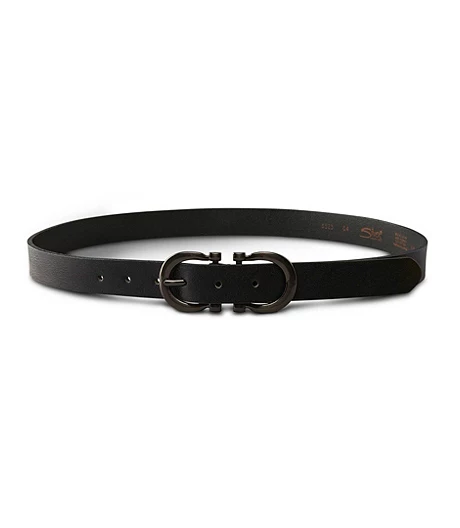 From Silver Jeans, this smooth genuine leather belt has a Double-D harness buckle with a gun-metal finish. The perfect complement for your Silver jeans.