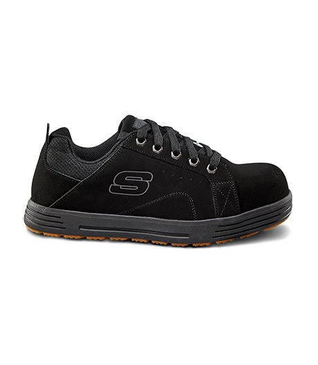 A skate-style safety shoe from Skechers Work, these feature steel toes and steel plates. They are also resistant to puncture and electric shock. Built for comfort with cushioned midsoles and Air Cooled Memory Foam insoles. Slip-resistant rubber outsoles add traction in areas that are prone to moisture and grease.