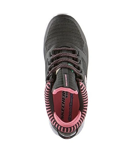 From Skechers Work, a cool look for the job facility. These safety shoes feature aluminum toes and steel plates that meet CSA Grade 1 requirements, plus slip-resistant rubber outsoles. Theyโre resistant to puncture and electric shock. For added comfort, these shoes have cushioned insoles and midsoles. Easy to get on and off, they have a non-tie elastic lacing panel.