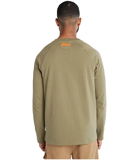 From Timberland PRO, this midweight, long-sleeve tee features an athletic fit and comfortable raglan sleeves for easy, active movement. Overlock seams add durability and keep friction to a minimum. Front and back PRO® logo graphics are reflective to enhance visibility in low-light conditions.