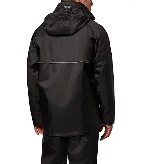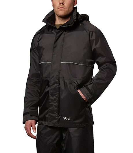 When you want to stay dry and protected on the worksite, this weather-resistant jacket does the job. It comes with an extra-large, fleece-lined collar for optimum coverage against the biting wind and a roomy three-piece hood to keep the rain off your head. Itβs finished with large vents on the front and back to prevent over-heating and safety piping on the front and back to keep you visible.