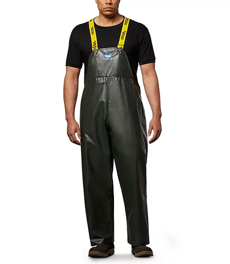 Designed for protection on the job, these hardworking bib pants are treated to resist oil stains while remaining flexible and functional. The roomy fit allows you to layer them over your workwear and heavy duty suspenders keep everything secure. Totally waterproof, they come with a reversible bib for long-term wear. Pair them with the available coordinating jacket for all-over coverage.