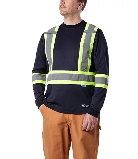 This safety shirt has a polyester outer layer lined with a dual-layer of cotton for decreased irritation and better comfort. The outer layer holds colour longer to retain its high visibility and the shirt meets CSA safety standards with Vi-Brance reflective tape front and back. Its also treated with UPF 50+ UV blocker for protection during outdoor work.