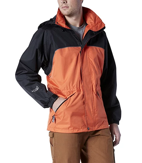 When the weather turns nasty, this hooded rain jacket will keep you dry and protected. The durable outer shell keeps the rain away while the mesh back offers upper body ventilation. It comes with a convenient hood that folds and stores away in the collar when you donโt need the extra coverage. Made for a perfect fit, it comes with a drawstring waist and hem so you can form the jacket for full protection. Complete with an inner cell pocket and large front pockets for storage, this rain jacket will make sure you stay dry when the skies open up and the torrent starts.