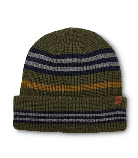 A well-designed knitted toque like this one from WindRiver hugs the head and protects the ears. The coloured stripes and rib-knit stitch pattern give the hat a textured look. A turn-back cuff adds an extra layer of warmth.